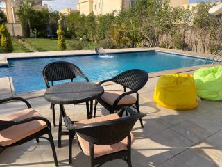 Apresentando um jardim, piscina exterior aberta todo o ano e vista do jardim, Villa Ayoun El Nakheel Luxury Family Stay with Garden and Pool localiza-se em Sphinx International Airport. Este alojamento dispõe de uma varanda, pingue-pongue, estacionamento privado gratuito e acesso Wi-Fi gratuito.
