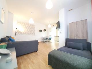 Este apartamento com ar condicionado tem 1 quarto, uma sala de estar, uma cozinha totalmente equipada com frigorífico e máquina de café, e 1 casa de banho com bidé e um secador de cabelo. Toalhas e roupa de cama são providenciadas neste apartamento.