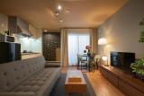 Este apartamento com ar condicionado dispõe de 1 quarto, uma televisão e uma cozinha com frigorífico e micro-ondas.