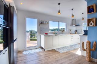 Esta casa de férias com ar condicionado tem 3 quartos, uma sala de estar, uma cozinha totalmente equipada com frigorífico e máquina de café, e 2 casas de banho com chuveiro. Toalhas e roupa de cama são providenciadas nesta casa de férias.